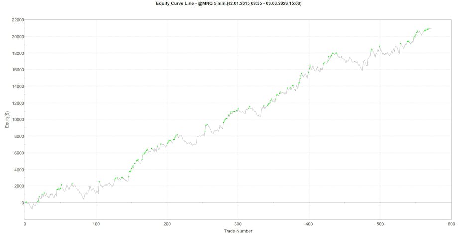 Here is a baseline backtest example for the Micro Nasdaq (MNQ):